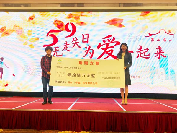 衛(wèi)材中國(guó)向中國(guó)人口福利基金會(huì)捐贈(zèng)46萬(wàn)元人民幣。