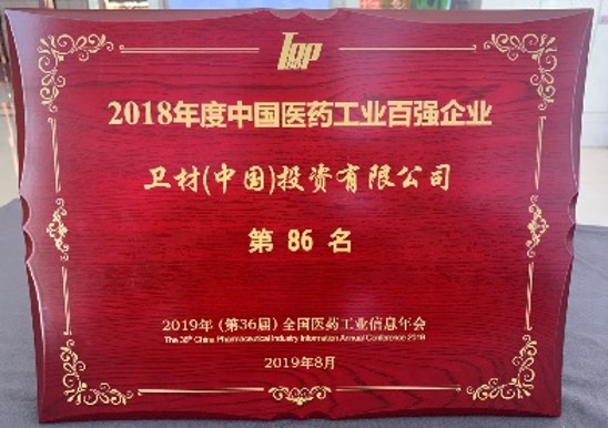 衛(wèi)材中國(guó)榮獲2018年度中國(guó)醫(yī)藥工業(yè)百?gòu)?qiáng)企業(yè)第86位。