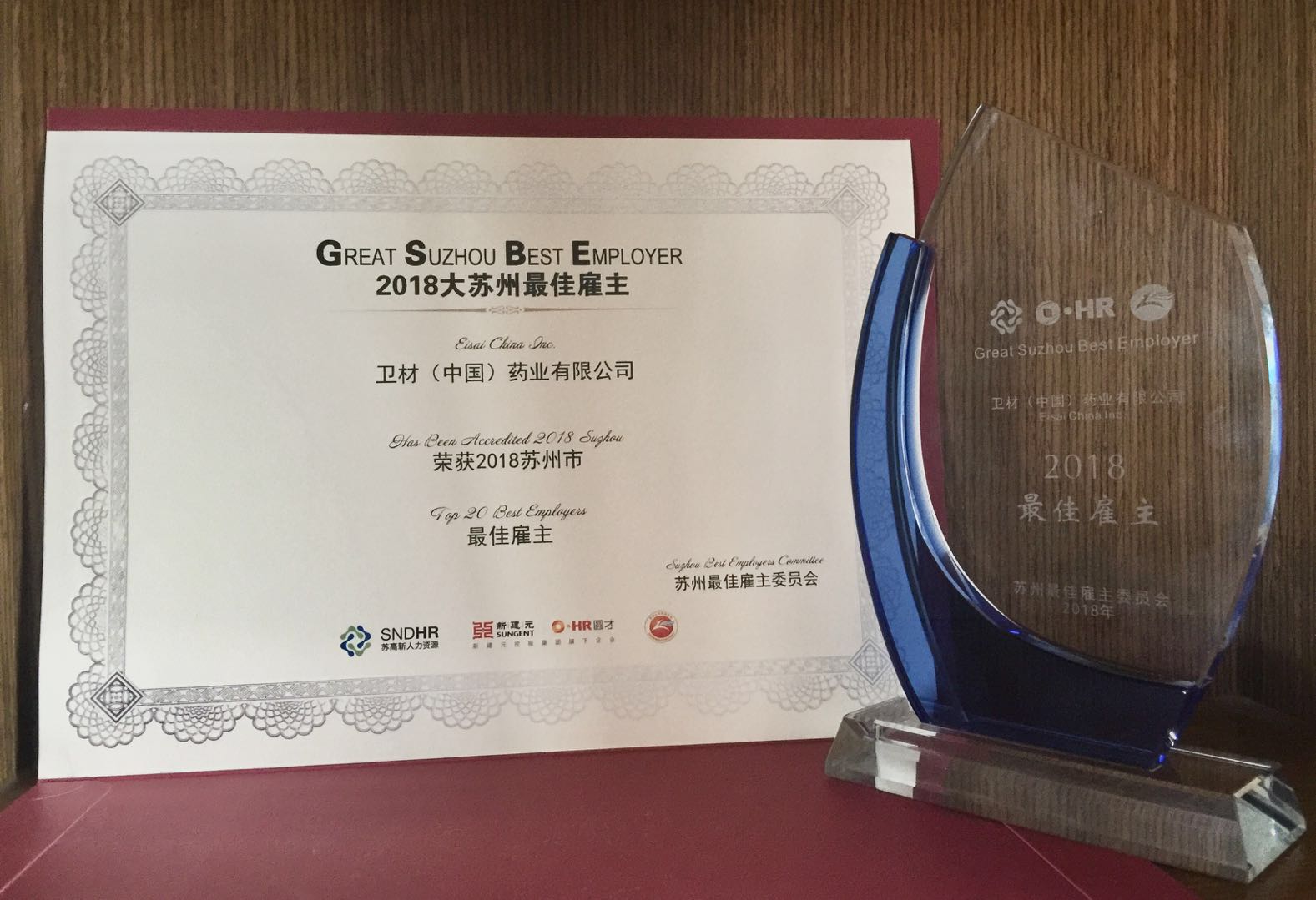 衛(wèi)材(中國)藥業(yè)有限公司連續(xù)兩年獲評大蘇州最佳雇主獎