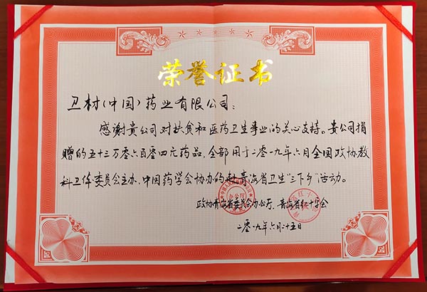 助力“衛(wèi)生三下鄉(xiāng)”活動(dòng),衛(wèi)材中國(guó)向青海省紅十字會(huì)捐贈(zèng)價(jià)值約53萬(wàn)元的藥品。
