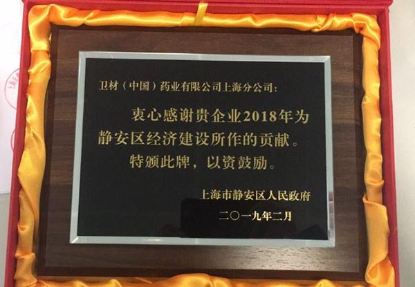 衛(wèi)材中國(guó)榮獲2018年靜安區(qū)經(jīng)濟(jì)建設(shè)貢獻(xiàn)獎(jiǎng)。