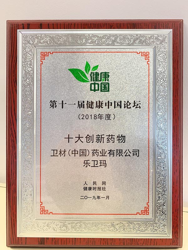 樂(lè)衛(wèi)瑪榮獲第十一屆健康中國(guó)論壇”之“2018年度十大創(chuàng)新藥物。