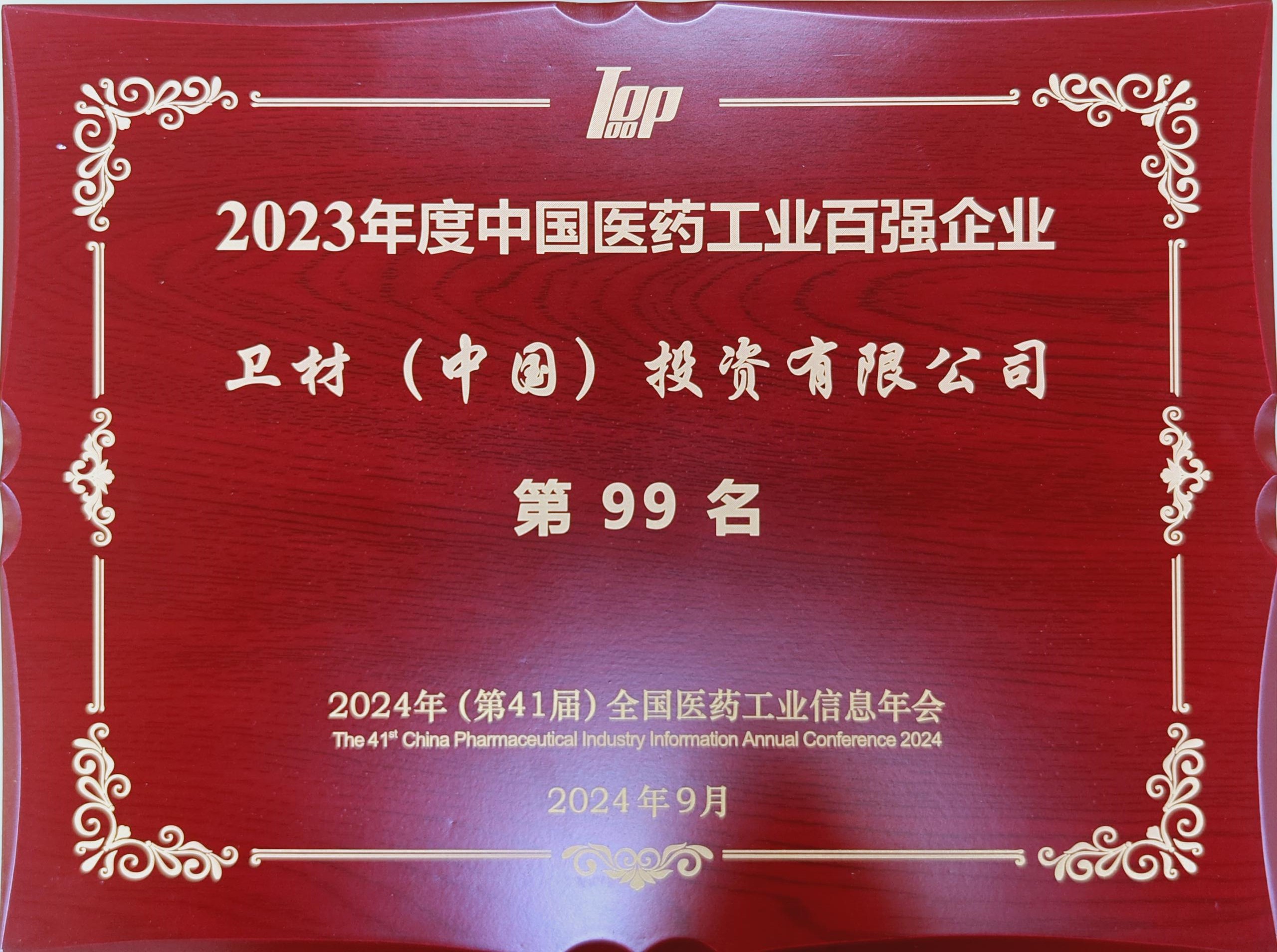 近日,由中國醫(yī)藥工業(yè)信息中心主辦的“2024年(第41屆)全國醫(yī)藥工業(yè)信息年會暨2023年度中國醫(yī)藥工業(yè)百強榜單發(fā)布會”在成都舉行。大會發(fā)布了備受行業(yè)關(guān)注的“2023年度中國醫(yī)藥工業(yè)百強榜”,衛(wèi)材(中國)投資有限公司(以下簡稱“衛(wèi)材中國”)榮登“2023年度中國醫(yī)藥工業(yè)百強企業(yè)”榜單。
