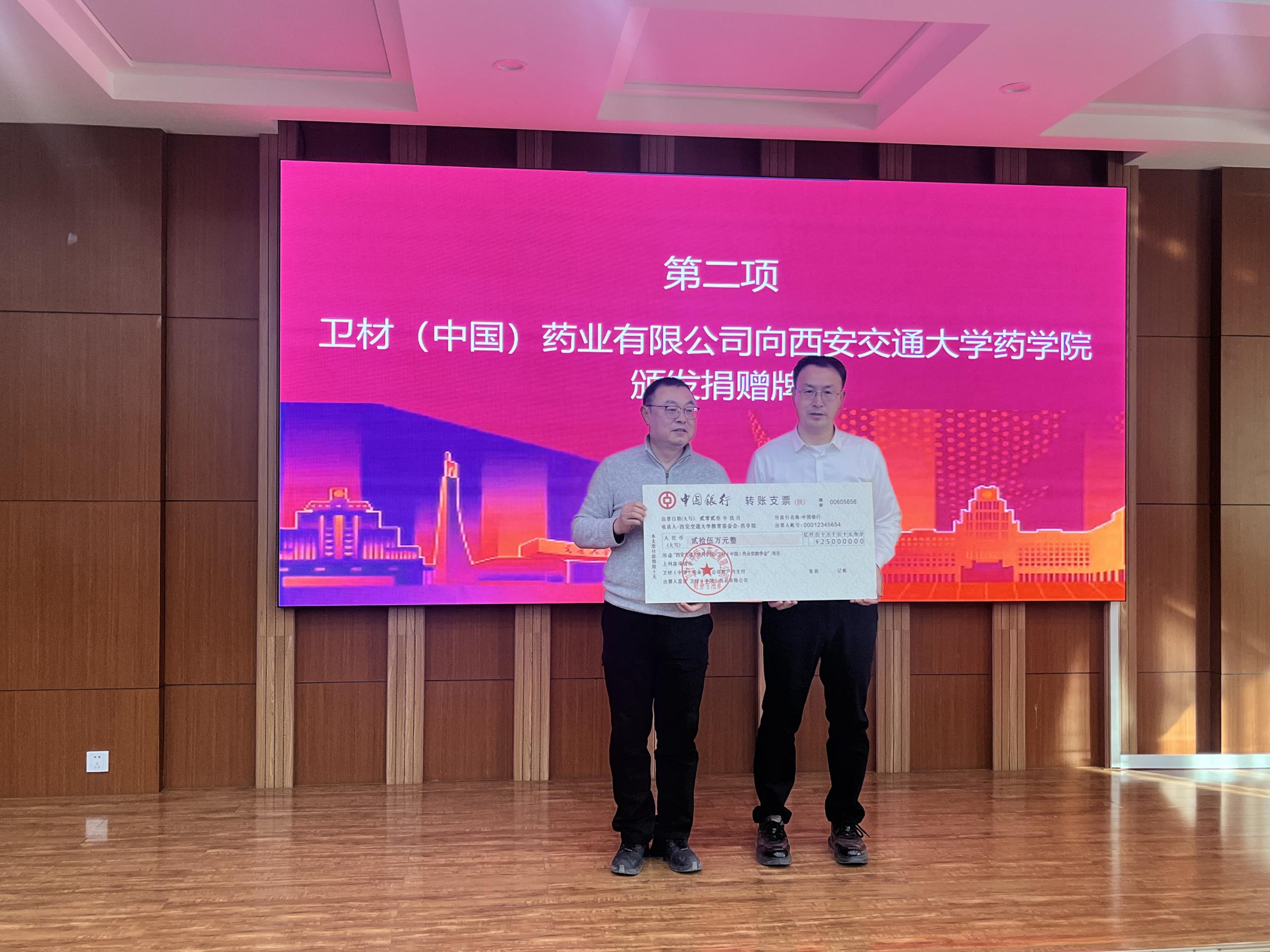 自2023年起,衛(wèi)材中國(guó)將連續(xù)5年在西安交通大學(xué)藥學(xué)院設(shè)立“衛(wèi)材中國(guó)獎(jiǎng)教學(xué)金”,每年捐贈(zèng)5萬(wàn)元,西安交通大學(xué)藥學(xué)院“衛(wèi)材中國(guó)獎(jiǎng)教學(xué)金”將惠及65名優(yōu)秀的西安交大教師和學(xué)生。